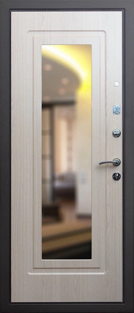 Прочная металлическая Дверь с зеркалом DZ385 по цене от 25 000 руб. под заказ в любой комплектации. Вы можете выбрать материал, замки, цилиндры и многое другое. Производим сами! Быстрая доставка и установка в Тюмени.