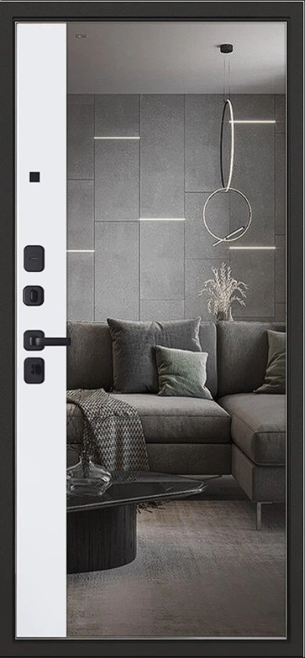 Надежная входная Дверь Scandi с зеркалом премиум класса по цене 45 395 руб. Большая толщина стали защитит от проникновения в ваш дом, квартиру или коттедж. Используется очень качественная фурнитура: замки, цилиндры, ручки, защелки. Покрытие и отделка двери изготовлено под внимательным контролем производителя. Дверь имеет долгий срок службы и гарантию.
