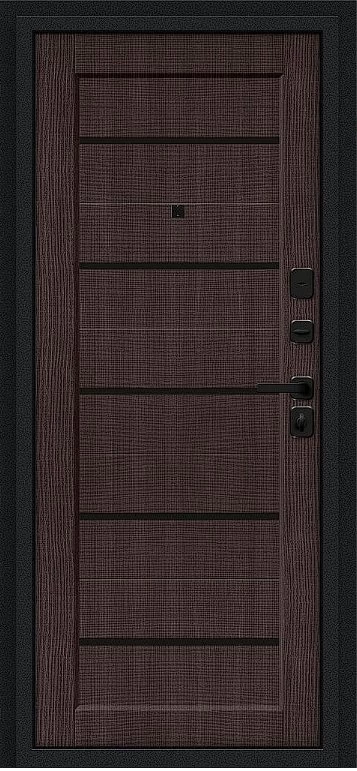 Надежная входная Дверь Браво Борн/SBlack Букле черное/Wenge Melinga премиум класса по цене 31 595 руб. Большая толщина стали защитит от проникновения в ваш дом, квартиру или коттедж. Используется очень качественная фурнитура: замки, цилиндры, ручки, защелки. Покрытие и отделка двери изготовлено под внимательным контролем производителя. Дверь имеет долгий срок службы и гарантию.