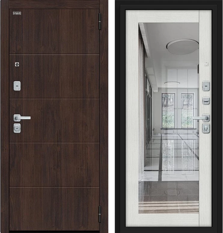 Надежная входная Дверь Браво Флэт/BChrome Almon/Bianco Melinga премиум класса по цене 42 495 руб. Большая толщина стали защитит от проникновения в ваш дом, квартиру или коттедж. Используется очень качественная фурнитура: замки, цилиндры, ручки, защелки. Покрытие и отделка двери изготовлено под внимательным контролем производителя. Дверь имеет долгий срок службы и гарантию.
