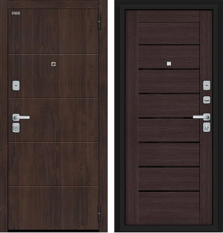 Надежная входная Дверь Браво Прайм/BChrome Almon/Wenge Melinga премиум класса по цене 40 095 руб. Большая толщина стали защитит от проникновения в ваш дом, квартиру или коттедж. Используется очень качественная фурнитура: замки, цилиндры, ручки, защелки. Покрытие и отделка двери изготовлено под внимательным контролем производителя. Дверь имеет долгий срок службы и гарантию.