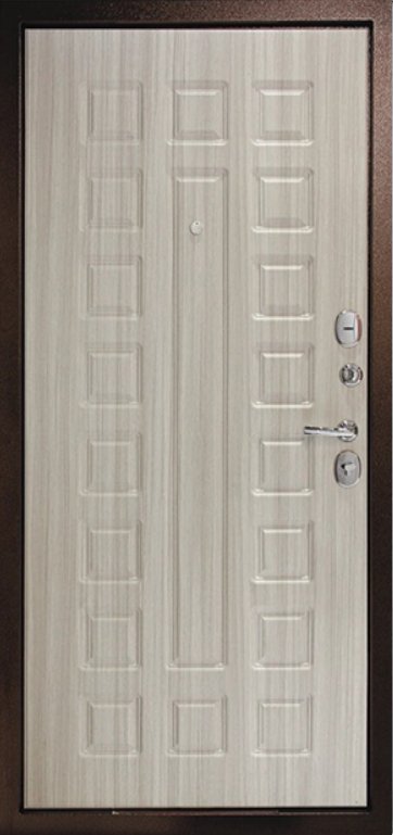 Надежная входная Дверь Рубикон 1 Медь Сандал белый премиум класса по цене 32 915 руб. Большая толщина стали защитит от проникновения в ваш дом, квартиру или коттедж. Используется очень качественная фурнитура: замки, цилиндры, ручки, защелки. Покрытие и отделка двери изготовлено под внимательным контролем производителя. Дверь имеет долгий срок службы и гарантию.